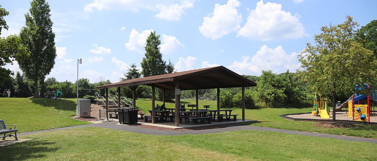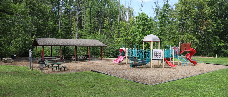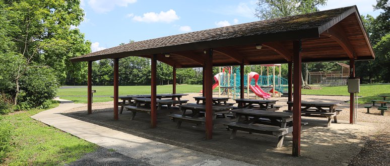 Additional amenities include a picnic pavilion with picnic tables and charcoal grills, a tot lot playground, and portable toilets. The facilities are available for use by the residents of the Township free of charge. The pavilion may be rented out for private parties for a nominal fee.